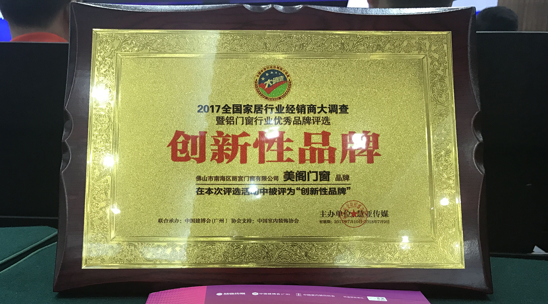 “2017全国家居行业经销商大调查暨定制家居&铝门窗行业优秀品牌评选活动”自启动以来,历时2个多月,来自定制家居行业、铝合金门窗行业近500余家品牌参与角逐,根据最终投票数据评选,美阁门窗荣获铝合金门窗“创新性品牌”,也是经销商和消费者对美阁门窗不断创新的认可。