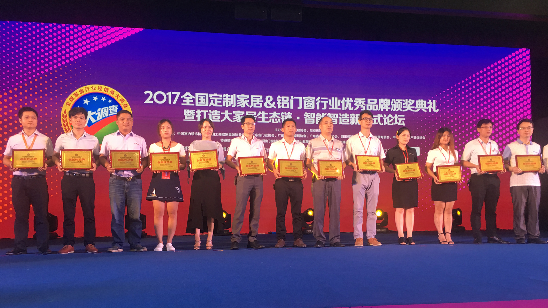 2017年7月10日下午,2017全国定制家居&铝门窗行业优秀品牌颁奖盛典在广州琶洲国际会展中心隆重举行。本次颁奖典礼暨论坛由中国建博会、慧亚传媒主办,中国室内装饰协会、全国工商联家具装饰业商会、广东省门业协会、广东省定制家居协会、中国智慧人居产业促进会支持。