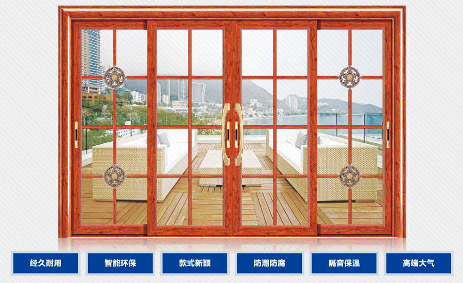 “重型系列”、“誉华系列”、“银弧系列”产品,均采用高强度、高纯度、高精度的钛镁合金加工制作而成:高强度的铝型材抗扭曲能力强,抗风力达10级;高纯度铝材,铝的纯度不小于99.8%;高精度型材加工,尺寸误差不超过0.03mm(国标误差不超过0.05mm);另外型材表面采用意大利热转印木纹技术、氟碳喷涂等表面处理技术,铝材表面光洁度好,色彩丰富,均匀典雅;。同时采用高强度双层化学钢化玻璃,硬度为普通玻璃强度的9-15倍,抗破坏力达600Mpa。产品工艺严谨、品质精湛、时尚简约、奢华经典、节能环保、安全牢固。