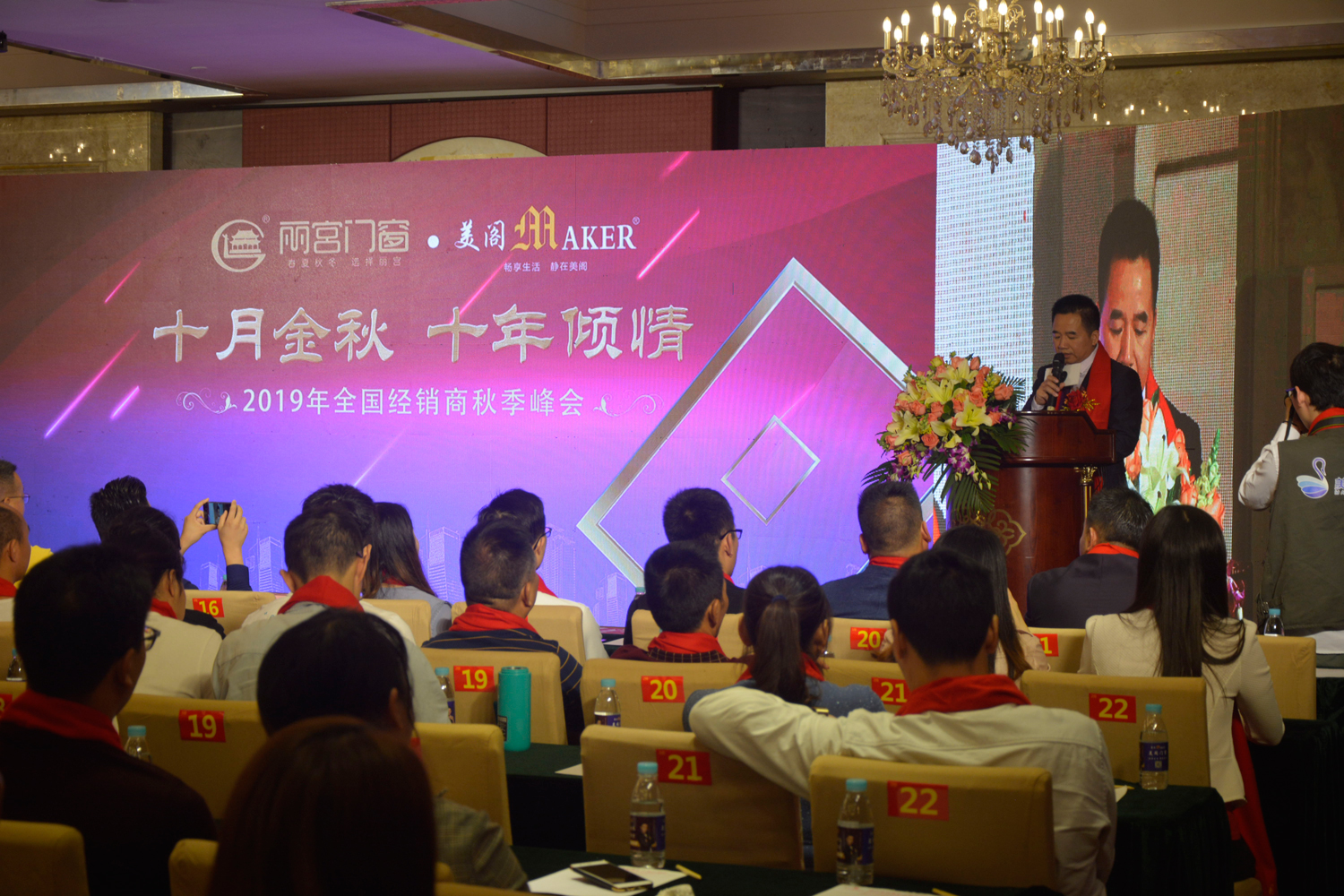 2019年10月29日-30日,正值秋高气爽之际,主题为“十月金秋,十年倾情”的美阁门窗全国经销商秋季峰会暨全国金牌店长第二期培训大会在佛山汇丰大酒店隆重举行,祝贺峰会取得了圆满成功!美阁门窗董事长李荫裕先生、公司总经理梁国南、公司副总经理张杰峰、广东门业协会秘书长徐生和总部各管理人员出席了活动,此外,来自全国各地的美阁门窗第二期受邀专卖店经销商代表及佛山电视台、搜狐家居、美家每户、网易家居、腾讯家居、新浪家居、惠亚传媒、门道网、慧聪家居、广东门窗网、中商建材网等新闻媒体记者参加了会议。