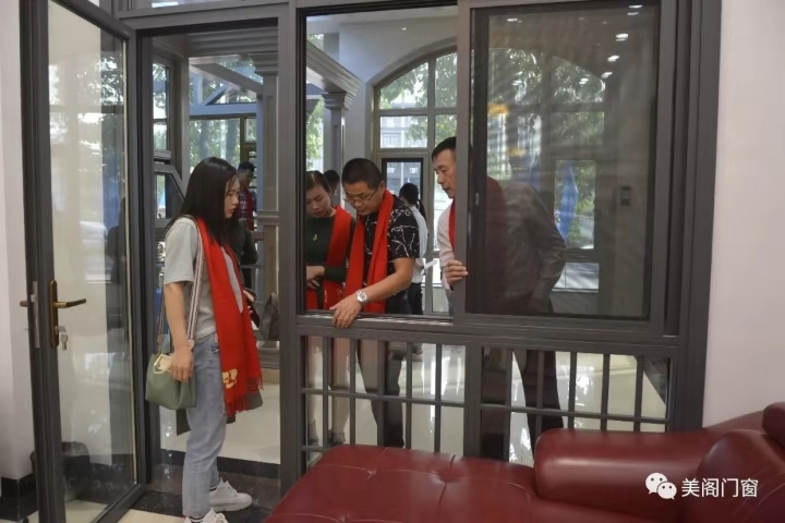 一系列环节结束后,由美阁门窗安排经销商对厂房和展厅进行了参观。各大区经理分组带领学员们前往厂房和展厅参观,对照实物由经理们帮助巩固一番,在厂房和展厅参观中,大家对产品有了更直观的认识,现场不断的提问,经理们耐心的解答,整个参观过程十分顺利,学员们也收获满满。