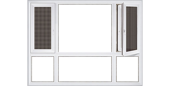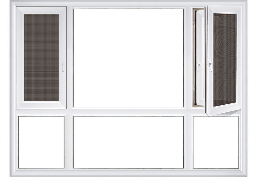*配置中空钢化玻璃;隔热型材,保温节能;三腔结构,强度高、隔音好;