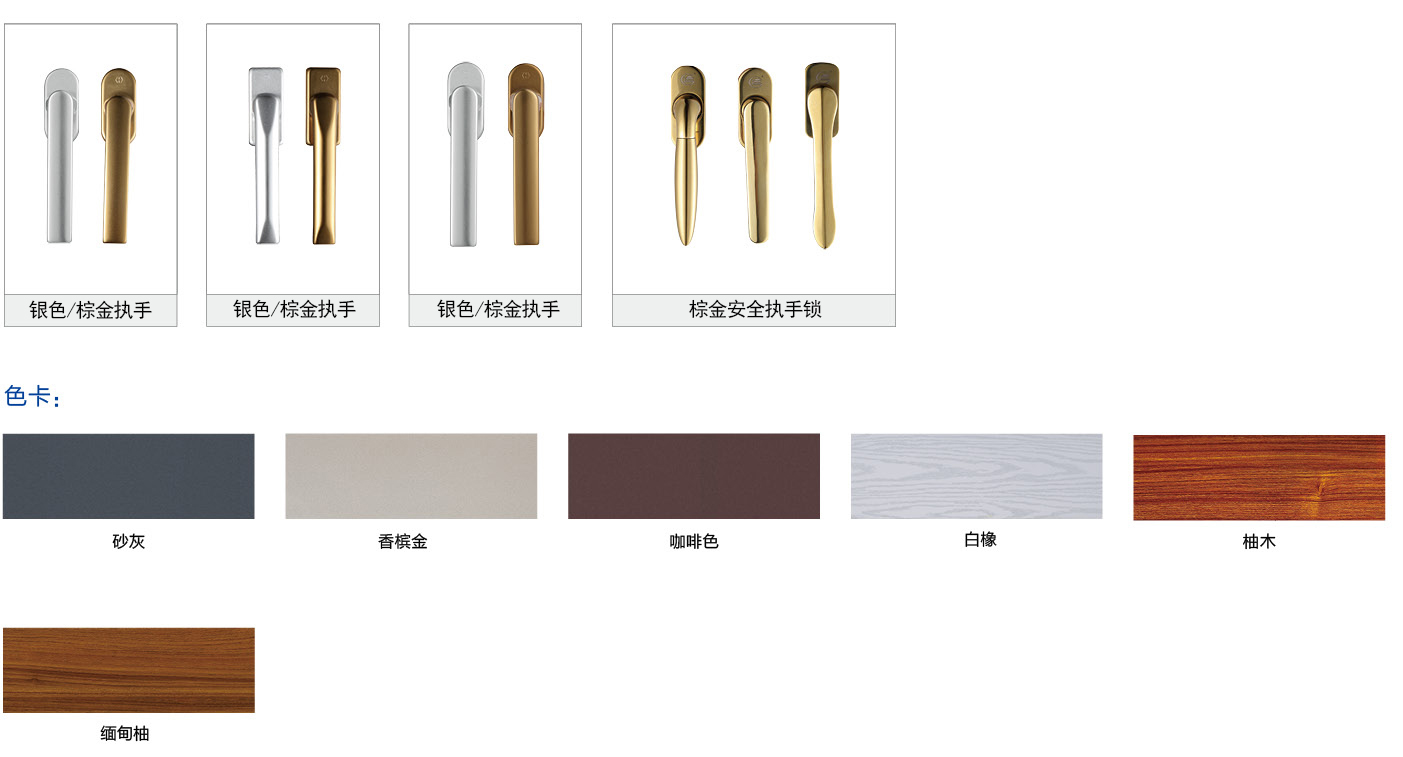 *超大中空玻璃+5层气密胶条结构;隔热型材,保温节能;三腔结构,强度高、隔音静音好。