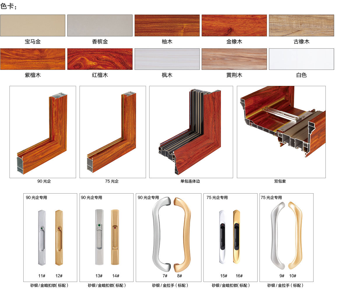 *选用进口五金配件,精巧大方。底部滑动系统承重能力达到100KG,在整扇推拉时顺滑、轻逸、无噪音。