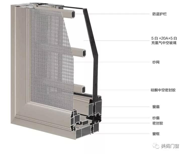 45°连接,美观、高雅。横竖扇框之间为45°连接,而不是直角连接,保持美观。隔热保暖密闭性强、节能环保,超大中空玻璃+5层气密胶条结构,防雨水防空气渗透,强化空间密闭性,隔热、静音效果远超欧洲标准。