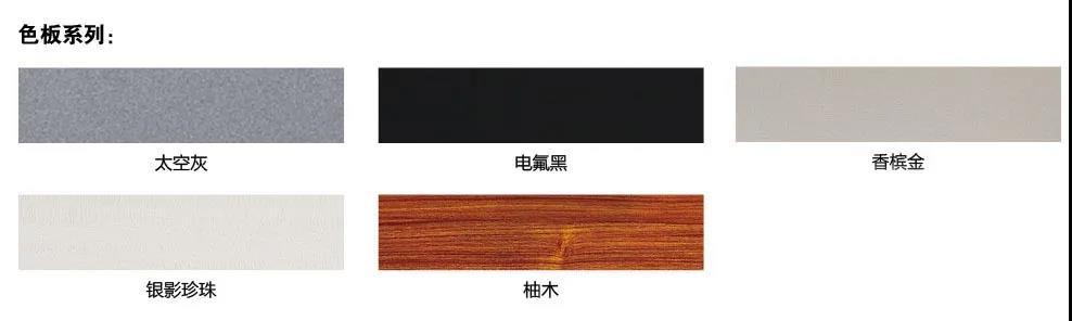 因为简约大气的外观,颜色可以与室内空间不同风格协调,不管是厨房与客厅、客厅与阳台、甚至是书房和卫生间等等,也完全不会有突兀感,轻松自然,很有时尚气息。型材配色有太空灰、香槟金、电氟黑、银影珍珠、柚木等颜色可供选择,可满足客户室内不同风格色调需求。